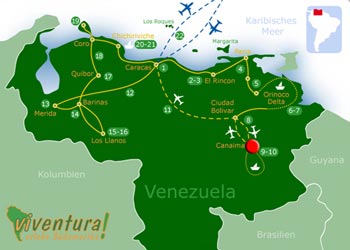 Unser heutiges Etappenziel war Canaima, mit seiner beeindruckenden Lagune und die darin hineinstürzenden Wasserfälle.